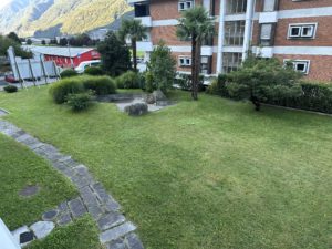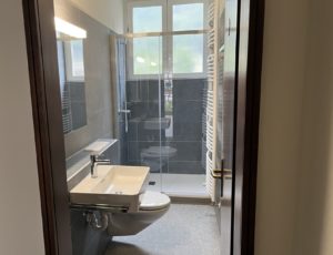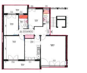 L’appartamento è così disposto: entrata/ grande corridoio con armadio a muro, soggiorno spazioso, porta comunicante con la cucina separata, camera matrimoniale con uscita sul balcone verso il giardino, due camere da letto, doppio servizio (1 con vasca, l’altro con cabina doccia).