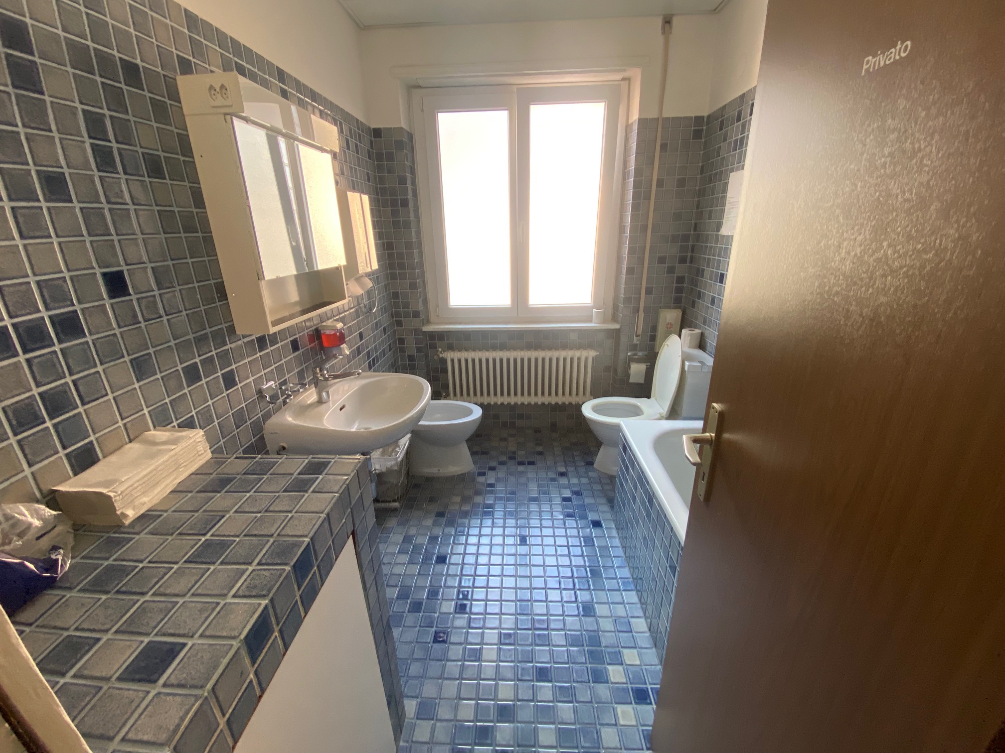 Affittasi ampio spazio commerciale vicino al centro di Bellinzona (zona Bar Stadio) di circa mq. 230 Lo spazio può essere suddiviso in diversi uffici, a dipendenza delle esigenze, doppi servizi, doccia e vasca da bagno. Modifiche da accordare con il proprietario.