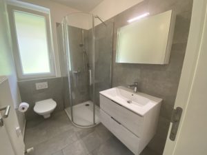 L’appartamento è così disposto: entrata/corridoio con armadio a muro, cucina ad angolo, open space salotto spazioso e balcone verso il giardino. 1 camera da letto. Bagno con cabina doccia (finestra). Cantina privata, lavanderia ad uso in comune.