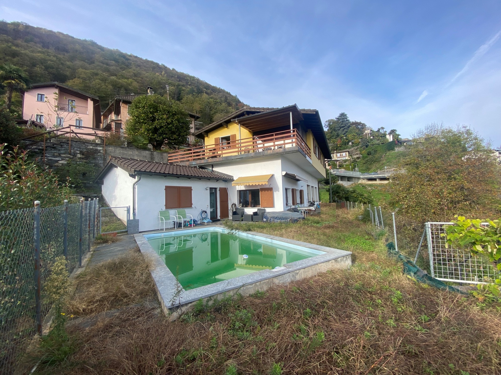 La proprietà dispone di un giardino panoramico, piscina interrata esterna e gode di una spettacolare vista sul Lago Maggiore.