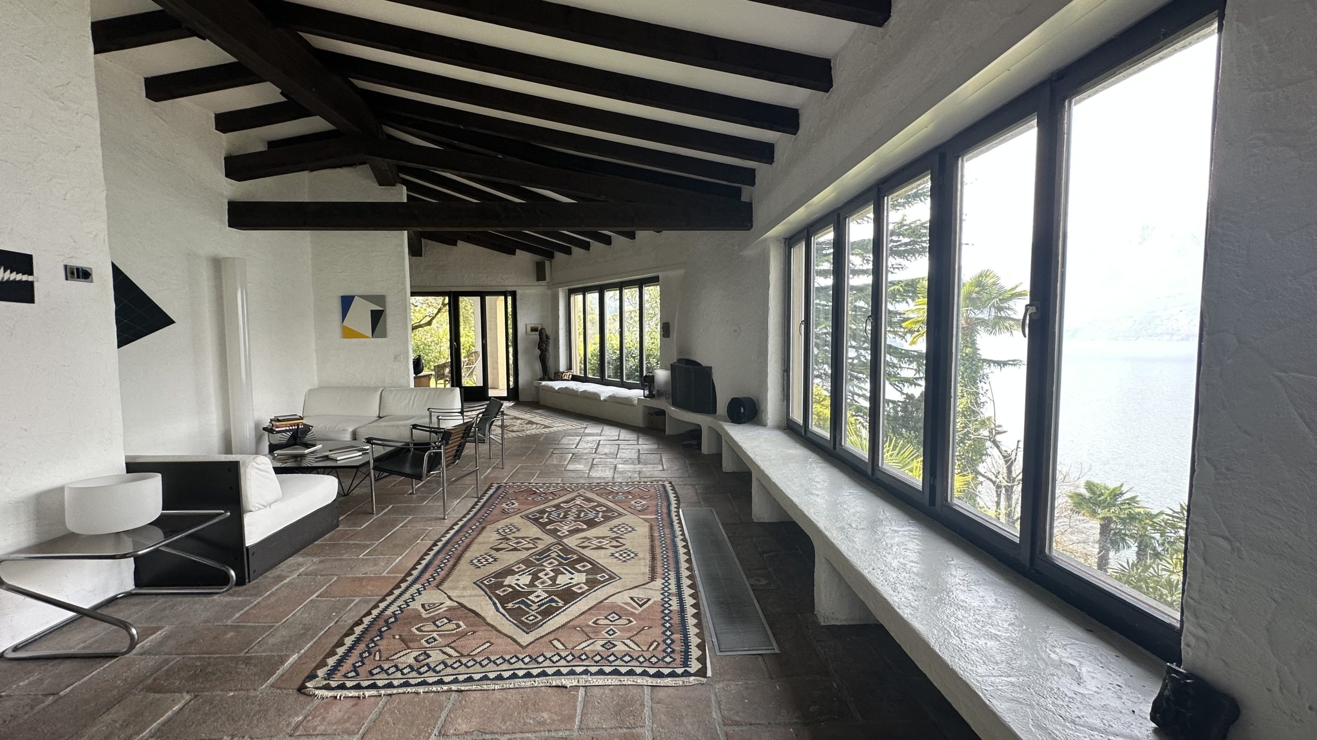 Al piano terreno si trovano: un accogliente atrio d’ingresso, WC ospiti, ampio soggiorno, sala da pranzo, cucina abitabile, una camera da letto e una suggestiva camera adibita a biblioteca. Completa il piano un bagno con doppio lavabo e vasca. Gli spazi sono valorizzati da grandi vetrate che garantiscono un’eccellente luminosità naturale e da soffitti alti con travi a vista. Di particolare pregio il pavimento in cotto antico.